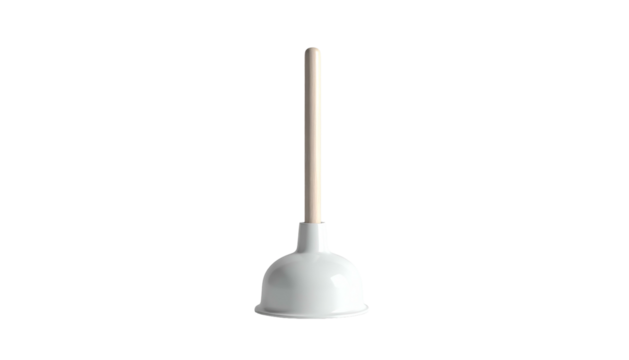 A white plunger with a wooden handle, isolated against a black background