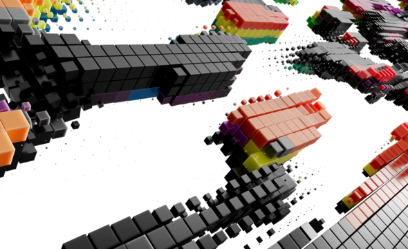 Abstract 3D Block Structures: Colorful Cubes and Pixel Art Design