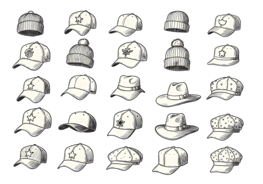 Collection Of Diverse Hats Accessories On Transparent Background Illustration