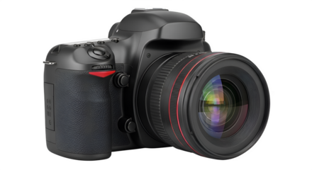 Rugged camera. Black and orange, with a large lens. Appears durable, perfect for outdoor adventures and high-quality images