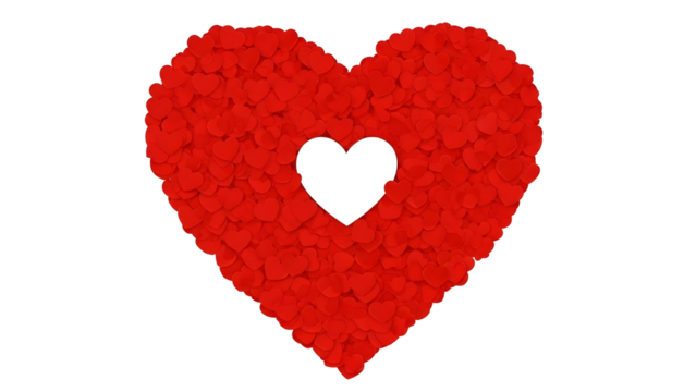 Digital red heart cluster on transparent background