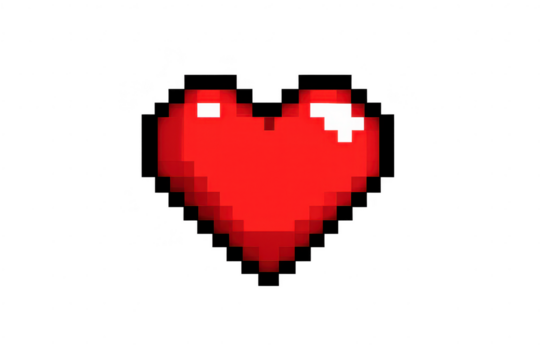 Pixel-art heart icon on transparent clear background