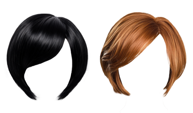 classic pixie hair style wigs in black and blonde colors. women's wigs. transparent background