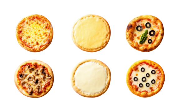 Top-down delicious pizza kitchen creations isolated on transparent background - Generative AI