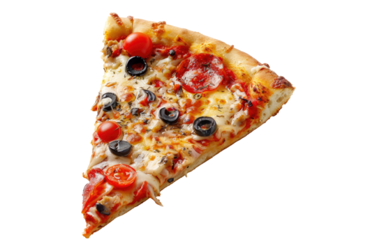 Pizza slice with stuffed crust on transparent background