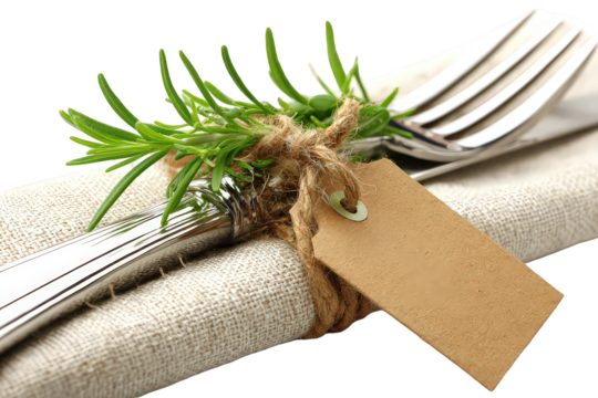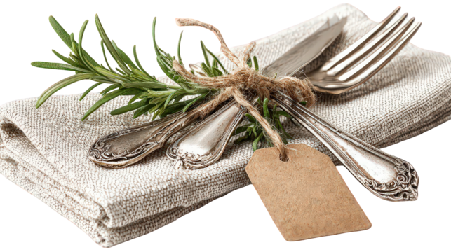 Elegant Place Setting with Rosemary Sprig and Kraft Tag