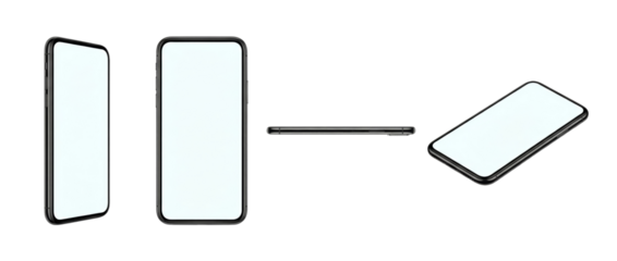 A modern laptop with a blank white screen and a camera notch, isolated on a white background.