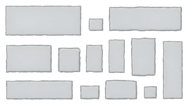 White paper rectangles with rough edges isolated on a transparent background various sizes