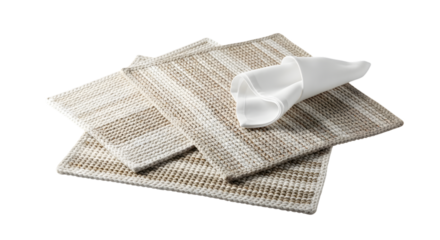 Blank beige placemat with decorative border for dining mock-up. Linen textured fabric rectangle on transparent background