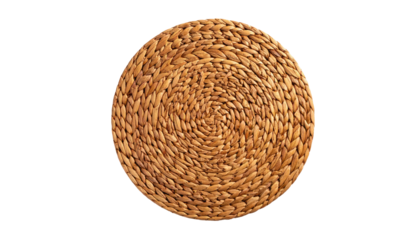 Handwoven rattan place mat isolated on transparent background, decorative png style mat for natural home decor and rustic dining table settings.