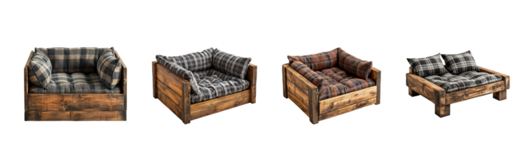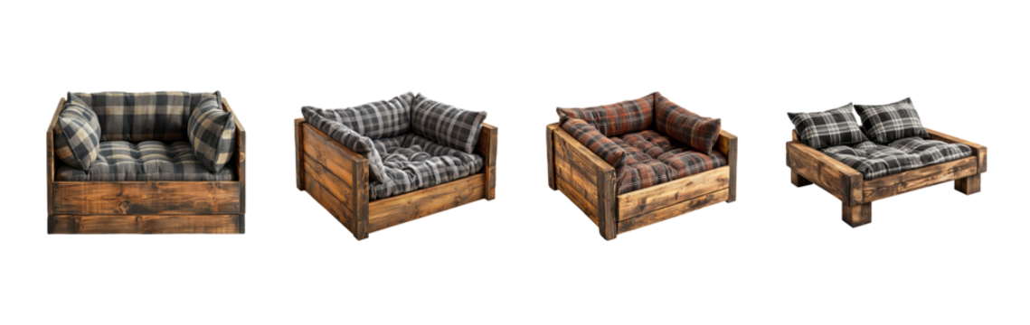 Elegant Loveseat with Plaid Pattern in PNG transparent background style