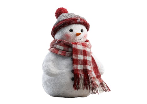 Cute snowman with red plaid scarf