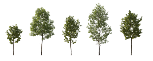 Acer pseudoplatanus, Alnus glutinosa, Ulmus pumila, Castanea sativa, Quercus robur frontal set trees isolated png on a transparent background premium cutout