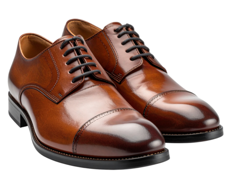 Brown Leather Dress Shoes in Clean Side-by-Side Alignment, Transparent Background