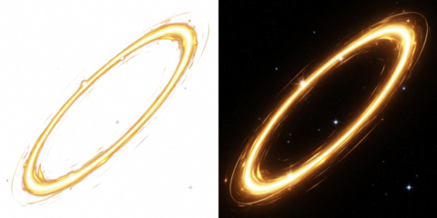 A stunning visual representation of two glowing rings in space with a black background and stars