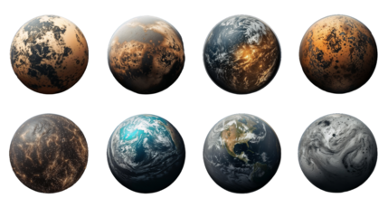 Weathered sci-fi planet texture, isolated on transparent background. PNG