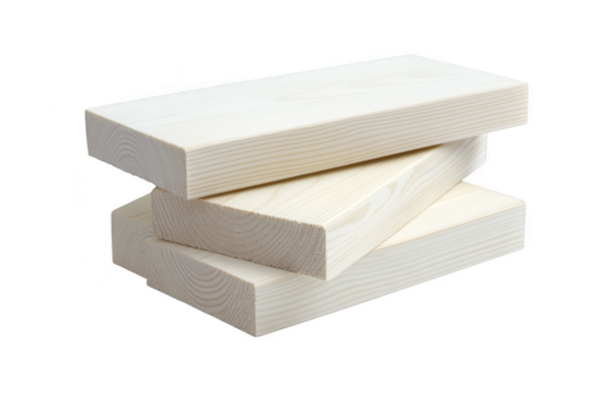 Three light colored wooden planks stacked together isolated on transparent background