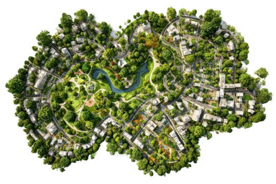 Urban green spaces design city park landscape architecture aerial view. Isolated on transparent background, png.