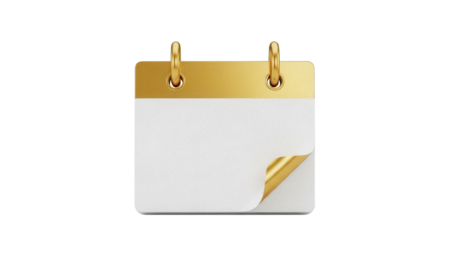 Golden calendar icon isolated PNG, reminder appointment schedule date event planning agenda organizer mockup on transparent background