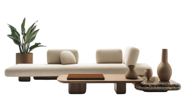 Office desk with laptop, lamp, and potted plant - transparent vector style