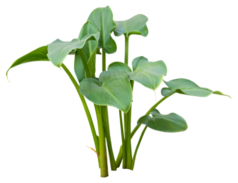 Green leaves of Anubias Congensis popular aquarium plants isolated on transparent background. PNG transparency