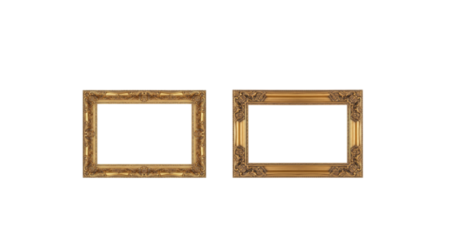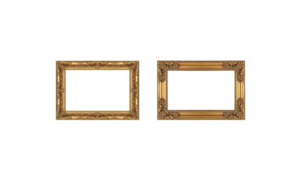 Gold rectangular plaque with ornate frame isolated on transparent background
