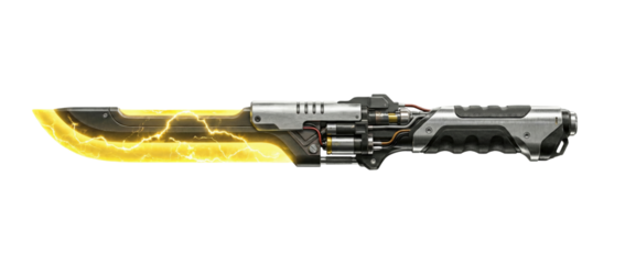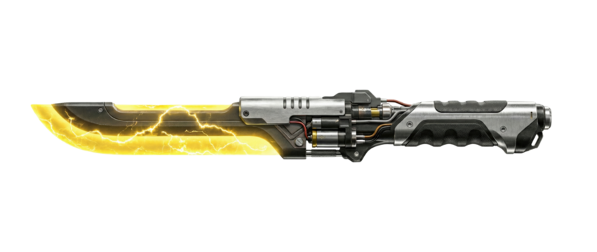 Electric tactical combat knife. Yellow plasma energy blade weapon.