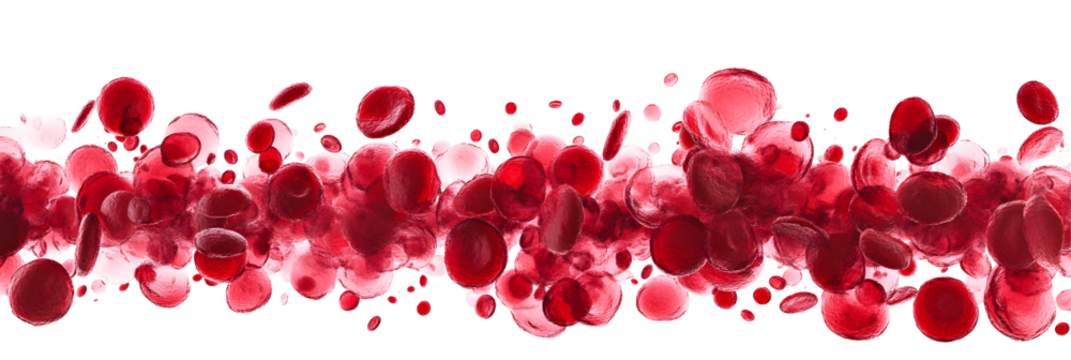 Dynamic red blood cells flowing in plasma isolated on white or transparent background