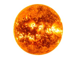 Fiery sun with energetic plasma flares erupting into the transparentness of space