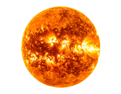 Fiery solar sphere with prominent, glowing plasma eruptions