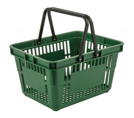 Three different shopping baskets in orange grey and white isolated on a transparent background image