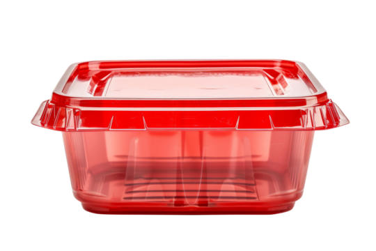 Top view takeaway plastic food box with two panels isolated on a transparent or white background