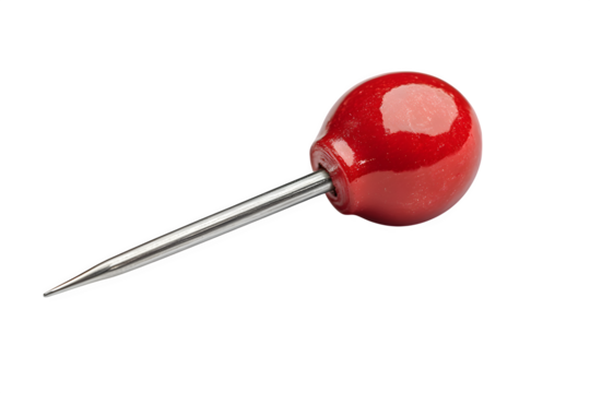 Glossy Red Thumbtack with Sharp Steel Tip, Front Close-Up View, Isolated on Transparent background