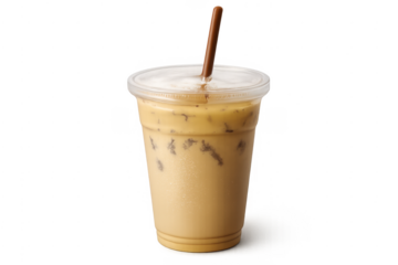 Refreshing iced coffee in a plastic cup with a straw isolated on transparent background, a perfect summer beverage