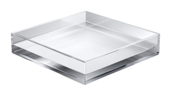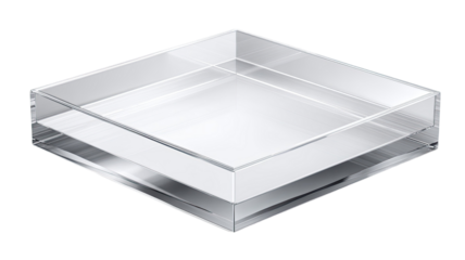 transparent square acrylic display tray minimalist clear container product photography modern household organizer isolated on white background