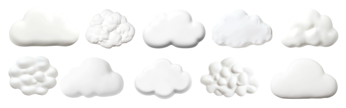 PNG Fluffy white cloud illustrations, isolated element set, transparent background