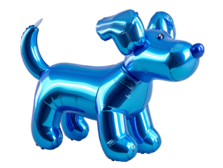 Shiny Blue Balloon Dog Sculpture, Front View, Glossy Finish, Transparent PNG