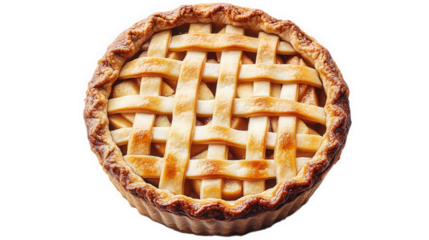 freshly baked pie with a golden-brown lattice crust. showcasing a traditional dessert presentation the pie is round and has a rich. inviting appearance. making it an appealing treat for any occasion.