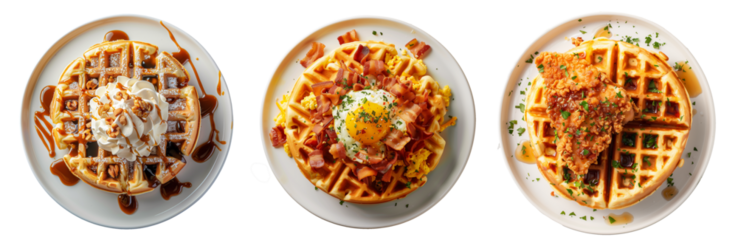Delicious plate of waffle ,side and top view, isolated on a transparent background ,PNG