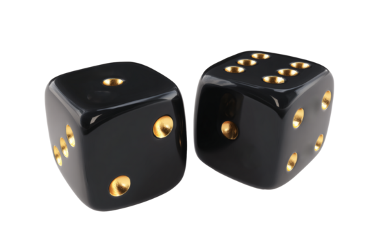 Elegant black dice with gold dots, conveying chance and strategy in a professional setting.