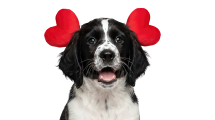 Joyful hipster couple singing in red dress and suit with transparent background