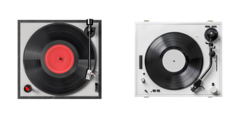 set of Vintage record player with vinyl spinning isolated on transparent background