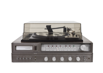 1970's vintage stereo with eight track, radio and record player isolated.