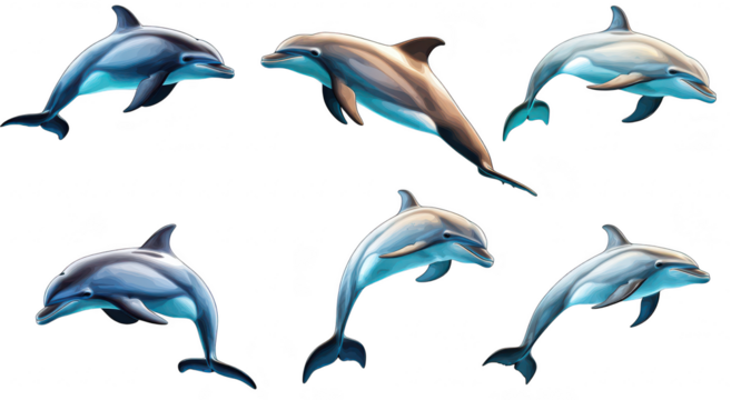 Bottlenose dolphin PNG isolated on transparent background, marine mammal with sleek gray skin and playful behavior for ocean life concepts