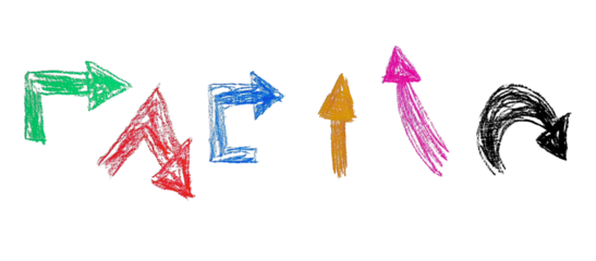 Hand drawn arrows made with crayon on paper. Raster photo illustration with expressive manual strokes, suitable for directions, guides, educational materials, and creative layouts.