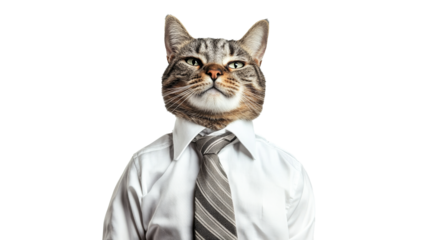 Golden retriever dog in business suit with tie sitting at office desk, working or studying, transparent background