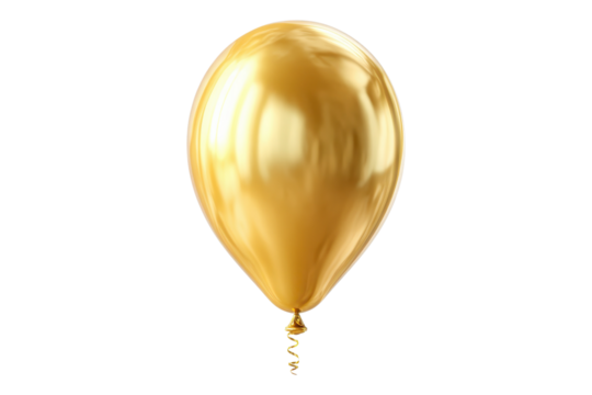 Gold party balloon displayed for celebration or festive concept on transparent background