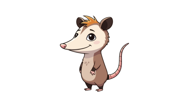 Cute cartoon opossum character standing and smiling, playful animal illustration