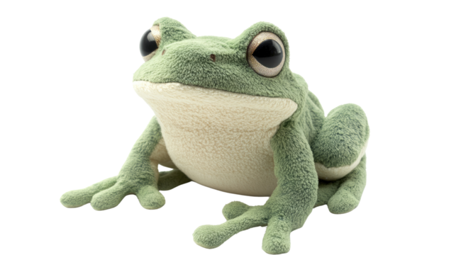 Cute green frog toy smiling on transparent background
