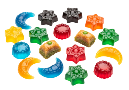 colorful crescent moon and star candies for ramadan eid mubarak celebration